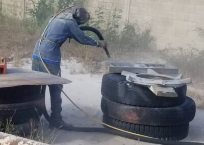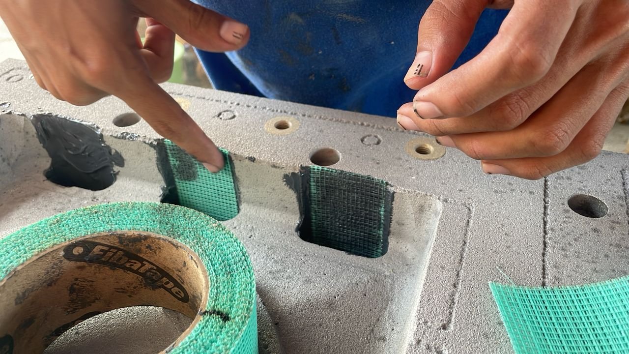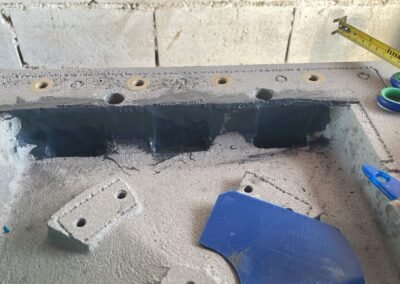 Se aplicó un sistema de reconstrucción con mallas de poliéster y compuestos cerámicos ARC 858 y ARC HTS de Chesterton para recuperar espesores de hasta 6 mm. El sistema se selló con poliuretano PU70 de Axalta.